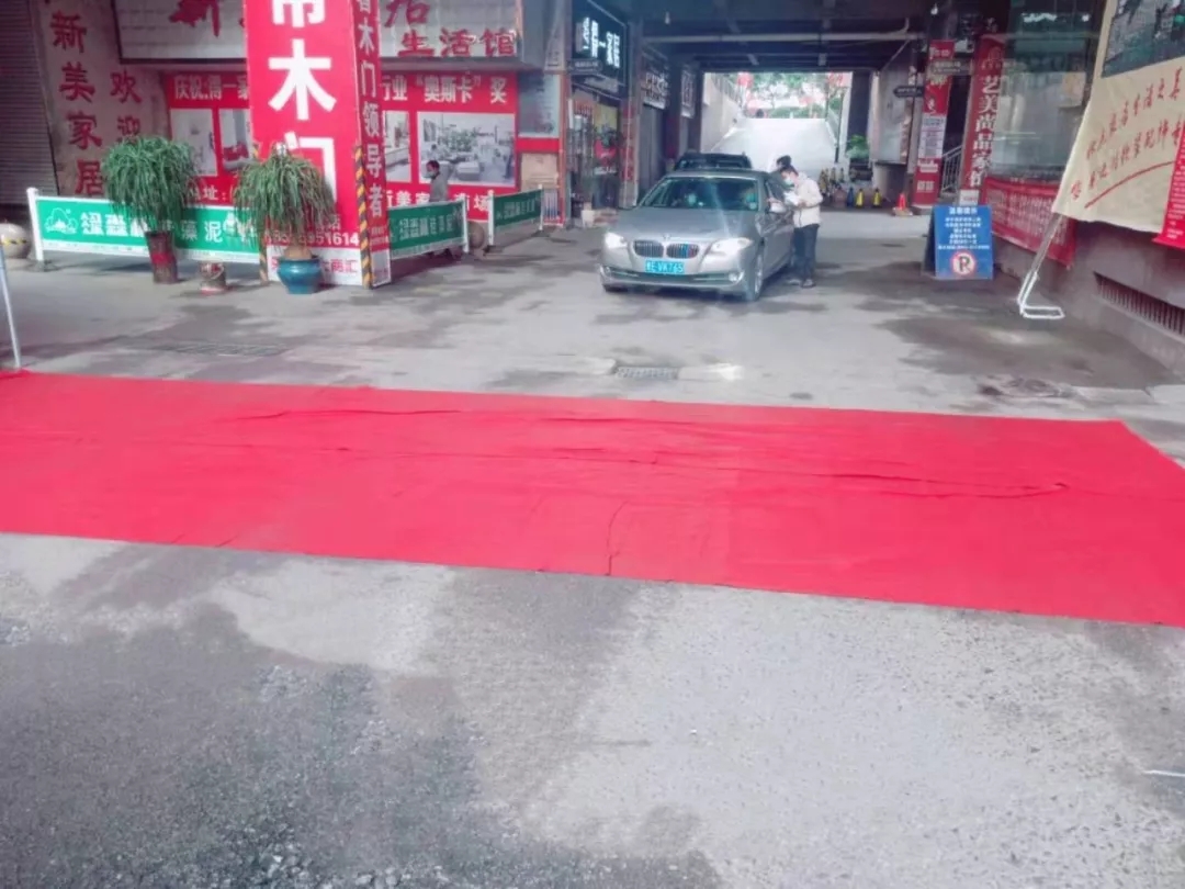 消毒液浸泡地毯放于停車場入口,對車輛輪胎消毒