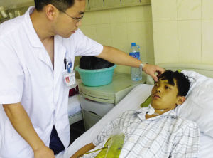 這名小伙子叫何勇,24歲,系桐梓縣人。“平時就是喜歡吃炒田螺,特別是最近幾個月,天天晚上都要吃一盤。”何勇說。兩個月前,他突感腹痛,但也沒太在意,直到一天工友吃驚地看著何勇,說發(fā)現(xiàn)他的眼白、皮膚呈現(xiàn)淡淡的綠色,何勇這才仔細照了照鏡子,“這一照不要緊,自己把自己嚇著了,就像電影里的綠巨人。”何勇說。