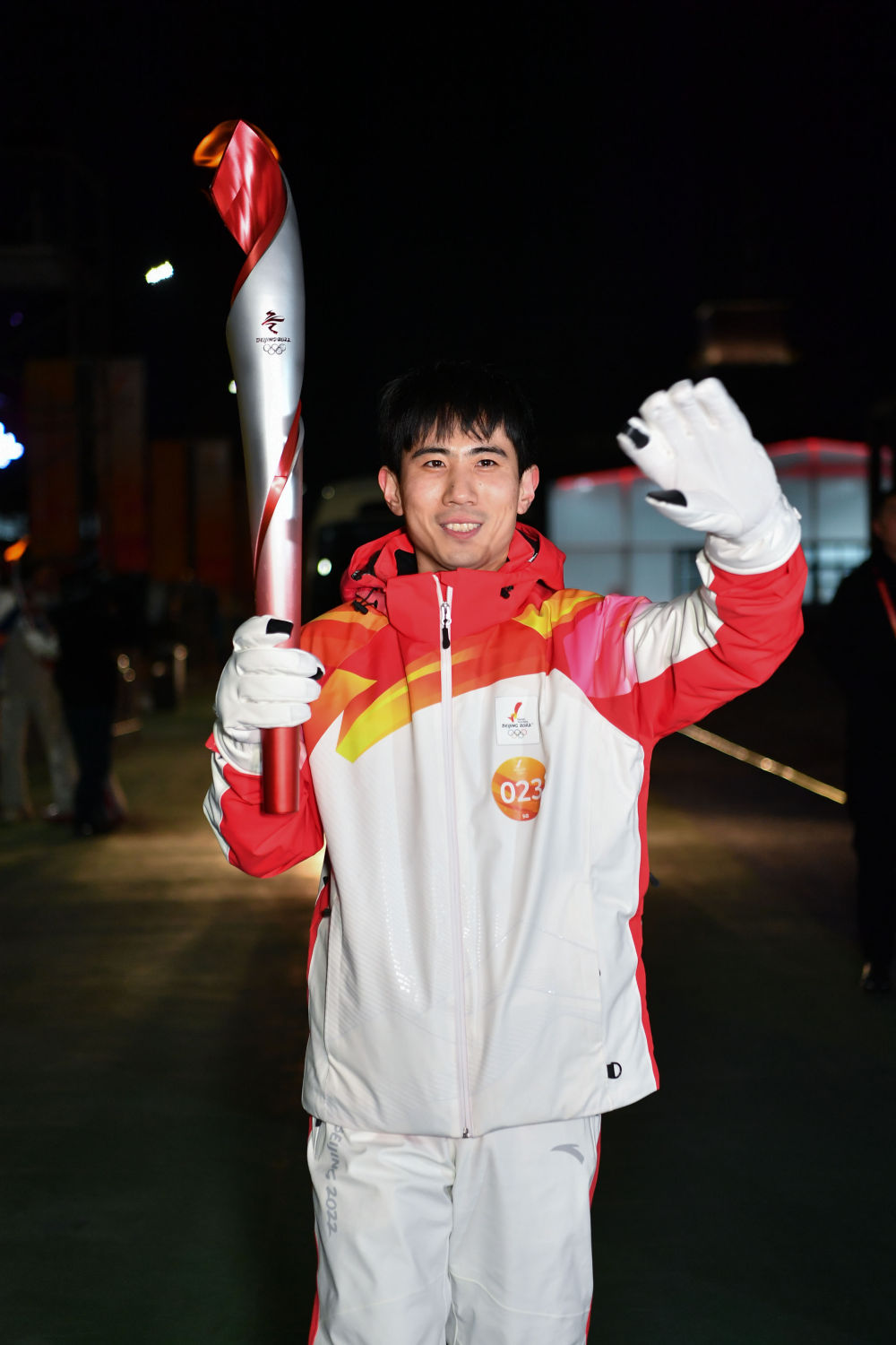 2022年2月2日,北京冬奧會火炬在首鋼園傳遞,作為火炬手的史曉剛在火炬?zhèn)鬟f中。新華社記者李鑫攝