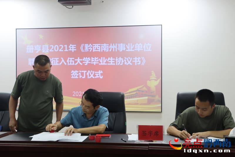 隨后,縣人力資源與社會(huì)保障局人才服務(wù)局負(fù)責(zé)人王東華主持入伍大學(xué)畢業(yè)生依次簽訂《黔西南州2021年事業(yè)單位聘用應(yīng)征入伍大學(xué)畢業(yè)生協(xié)議書》。