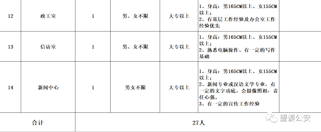 5. 身體健康,體貌端正,無(wú)殘疾,無(wú)口吃,無(wú)重聽(tīng),無(wú)色盲,色弱,面部無(wú)明顯特征和缺陷,無(wú)紋身,無(wú)駝背和其他不適宜從事警務(wù)輔助工作的疾病,雙眼矯正視力正常,男性身高1.65米以上,女性身高1.55米以上;