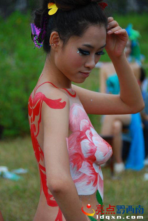 提示: 8月4日至6日,來(lái)自南國(guó)名都廣州的王華同女士率10名彩繪師、10名模特,在黔西南州貞豐貴州雙乳峰景區(qū)現(xiàn)場(chǎng)表演、展示人體彩繪藝術(shù)。 這是第一次在黔西南進(jìn)行的“人體彩繪藝術(shù)秀”活動(dòng),據(jù)悉,也是迄今貴州省規(guī)模最大、檔次最高的一次人體彩繪藝術(shù)秀。每天一場(chǎng),場(chǎng)場(chǎng)火爆,來(lái)自云南、廣西、西藏、貴州等地的200余名攝影家、攝影愛(ài)好者聚集一堂,抓住這一期盼已久的題材,頻頻舉起相機(jī)按下快門(mén),釋放出強(qiáng)烈的創(chuàng)作欲望;眾多的游客也舉起了手中的相機(jī)、手機(jī)競(jìng)相拍照。(組圖22幅)