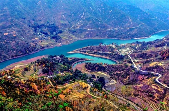 竹麻山是龍吟鎮(zhèn)新農(nóng)村建設(shè)的示范村寨,這里山歌、服飾、民居、禮儀、建筑、習(xí)俗等多種文化相生相息,固有的民族民間文化豐富而多樣,對民族文化的融入和傳承具有廣泛的群眾基礎(chǔ),其獨特的地理環(huán)境積淀形成了竹麻山古樸而又神秘的文化特質(zhì)。苗寨被兩座形如一雌一雄的老虎護擁著,老虎前腳尖利而有力,穩(wěn)穩(wěn)地扎根在奔騰咆哮的北盤江上,尤如兩只鳳凰在江上親昵和互動,當(dāng)?shù)厝嗣?ldquo;鳳凰戀”。
