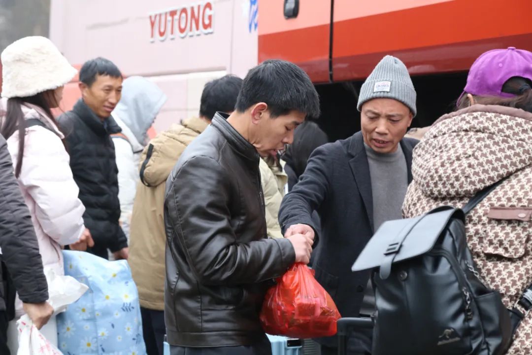 2月21日,普安縣第五批152名免費(fèi)乘大巴返崗務(wù)工群眾陸續(xù)到達(dá)縣客運(yùn)站,在工作人員的組織下有序放置行李乘車前往浙江、廣東、福建、海南等地務(wù)工。