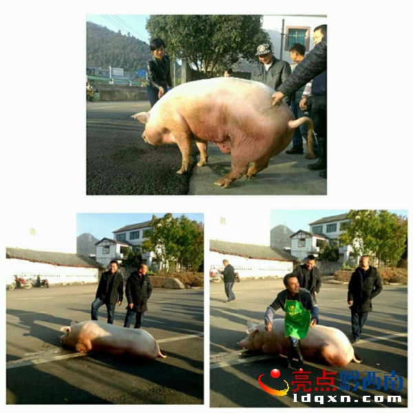 興義烏沙村民宰殺了一頭千余斤重年豬 喂養(yǎng)四年肉味香