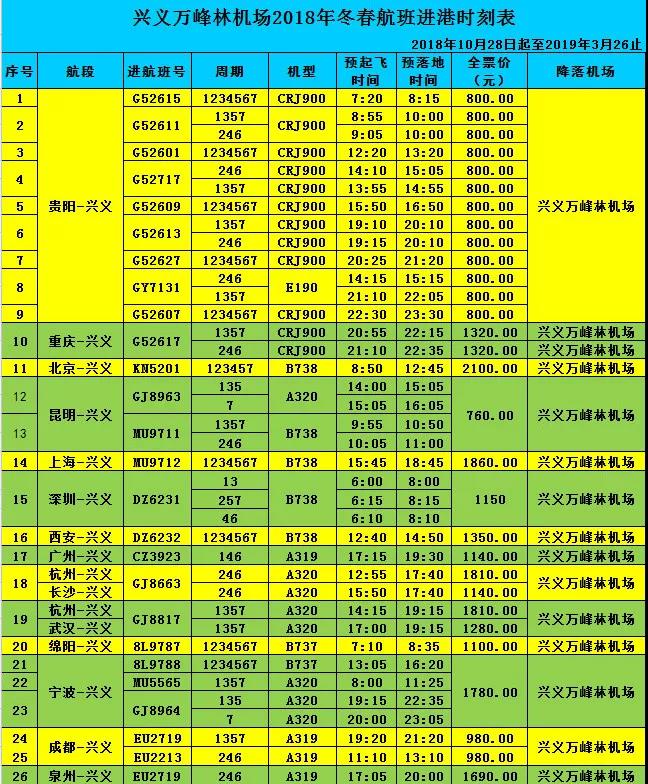 截止到2019年3月26日,每天都有以上航班飛往興義或從興義飛出,歡迎親愛的游客朋友們關(guān)注航班時刻表。為了遇見你,我想打個“飛的”來興義!