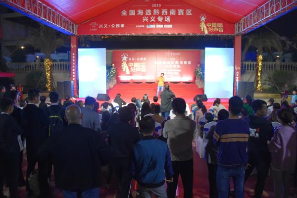 5月10日晚上7點半,2019年《中國好聲音》全國海選黔西南賽區(qū)興義專場第四場在興義公園里準(zhǔn)時開賽。興義公園里現(xiàn)場擁滿觀眾,座無虛席,大部分觀眾站著觀看,F(xiàn)場氣氛熱烈,觀眾中有的舉起雙手為自己心儀的歌手鼓掌,有的拿起自己的手機錄起了小視頻。參賽選手更是拿出了看家本領(lǐng),為現(xiàn)場觀眾帶來了自己美妙動聽歌聲。