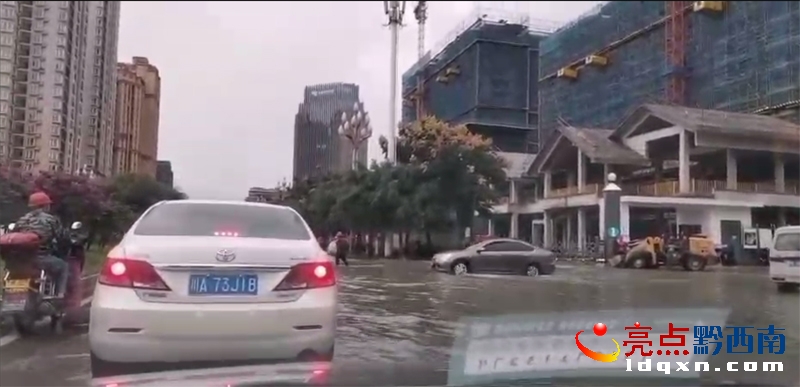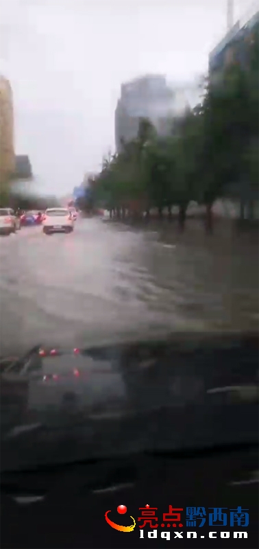 今日(9月9日)上午,興義市桔山大道出現(xiàn)積水。(網(wǎng)友視頻截圖)