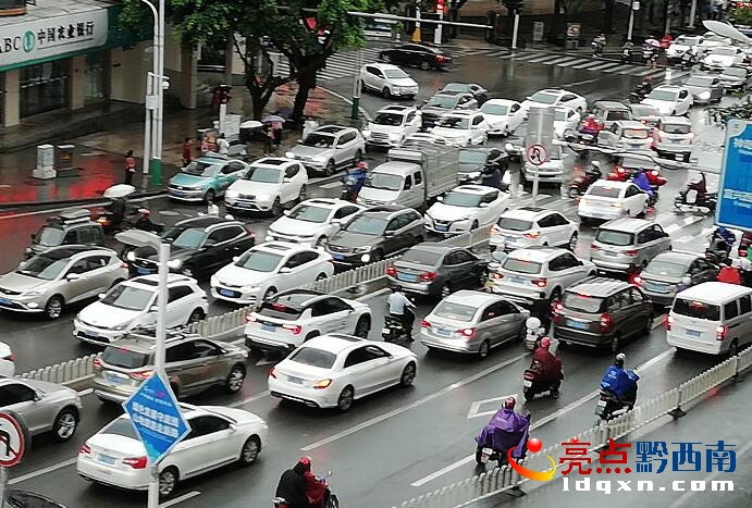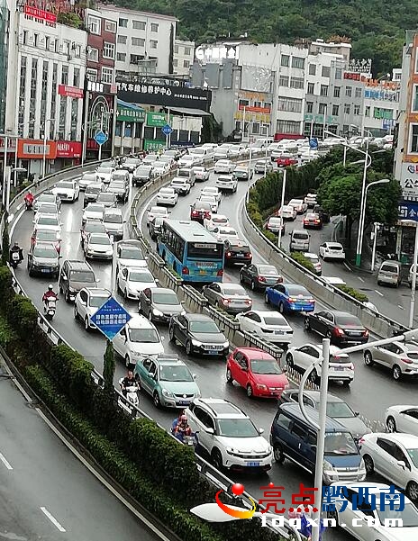 興義市區(qū)多個路段皆出現(xiàn)不同程度的擁堵。