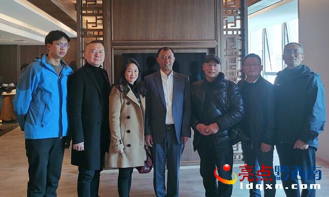在即將開業(yè)的昆明富康喜來登大酒店,富康集團董事局主席黎斌與黔西南媒體部分代表合影。