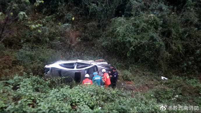 興義:轎車沖出道路掉入20米高坑 消防緊急救援