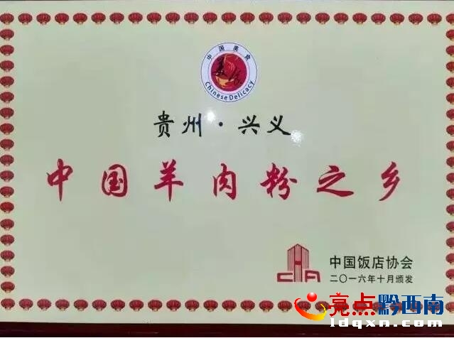 中國飯店協(xié)會(huì)授予興義市“中國羊肉粉之鄉(xiāng)”