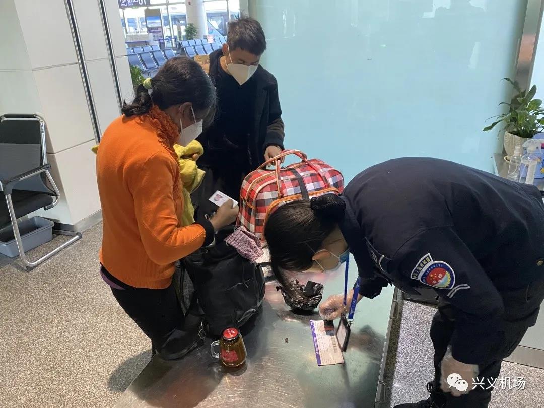日常工作中經(jīng)常有旅客在過安檢時,因為不熟悉相關(guān)規(guī)定,被檢出有不能隨身攜帶需要辦理托運的物品,需重新排隊補辦托運和二次過檢,十分不方便。對于旅客來說,重復(fù)排隊很麻煩,對于航空安全而言,不允許隨身攜帶上飛機的行李物品確實需辦理托運,為了旅客和航空安全,興義機場采取積極有效措施,為需要辦理托運的旅客登機牌加蓋“優(yōu)先行”印章,安全檢查站與運輸保障部聯(lián)合聯(lián)動,對該類旅客免排隊優(yōu)先辦理托運和安檢。同時,按照“可知可控、精準防控”的疫情防控要求,嚴格落實各項措施,在安檢閘機和驗證臺排隊等候區(qū)張貼“請摘下口罩配合拍照,謝謝!”等提示標識,保障旅客安全出行。