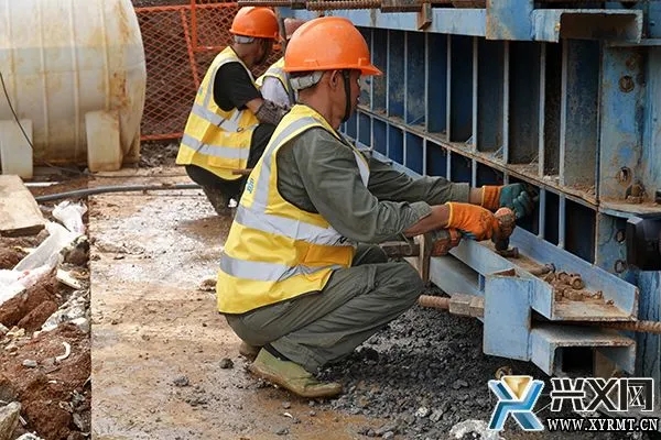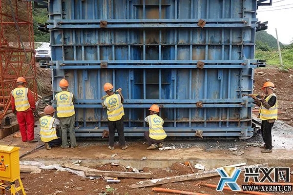 圖為峽谷村特大橋施工現(xiàn)場工人正在拆裝模板