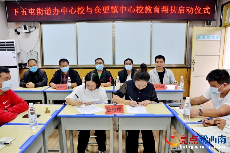 啟動(dòng)儀式上解讀了《2021--2022學(xué)年度教育幫扶支教管理工作方案》,同時(shí)宣讀結(jié)對(duì)名單,并簽訂了幫扶協(xié)議。本次教育幫扶活動(dòng)下五屯街道辦中心校從興義第十六中學(xué)和中心幼兒園分別選派了6位優(yōu)秀教師到倉(cāng)更鎮(zhèn)中學(xué)和倉(cāng)更鎮(zhèn)幼兒園進(jìn)行幫扶支教。