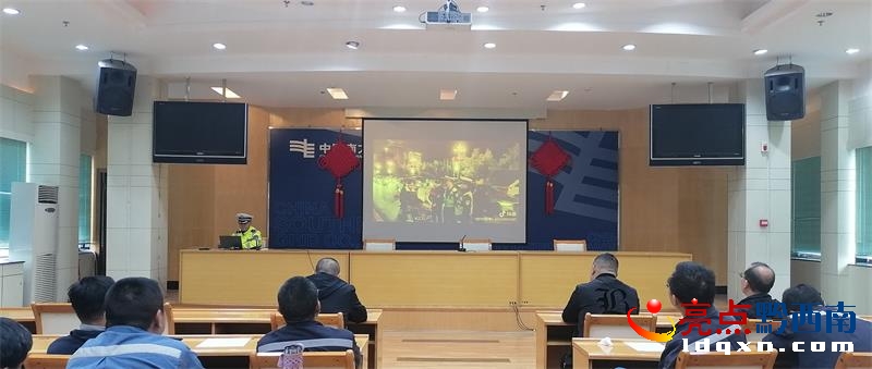 日前,貴州省興義市公安局交警大隊(duì)民警到市供電局城區(qū)分局,為12個(gè)部門79名工作人員開(kāi)上了一場(chǎng)交通安全專題課。