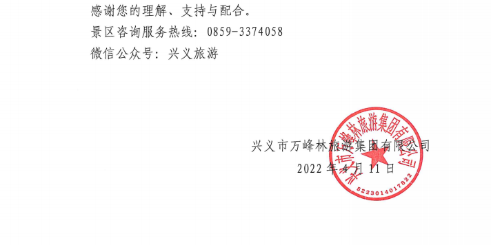 興義市萬峰林旅游集團(tuán)有限公司關(guān)于旗下部分景區(qū)及文旅場(chǎng)所開園的公告