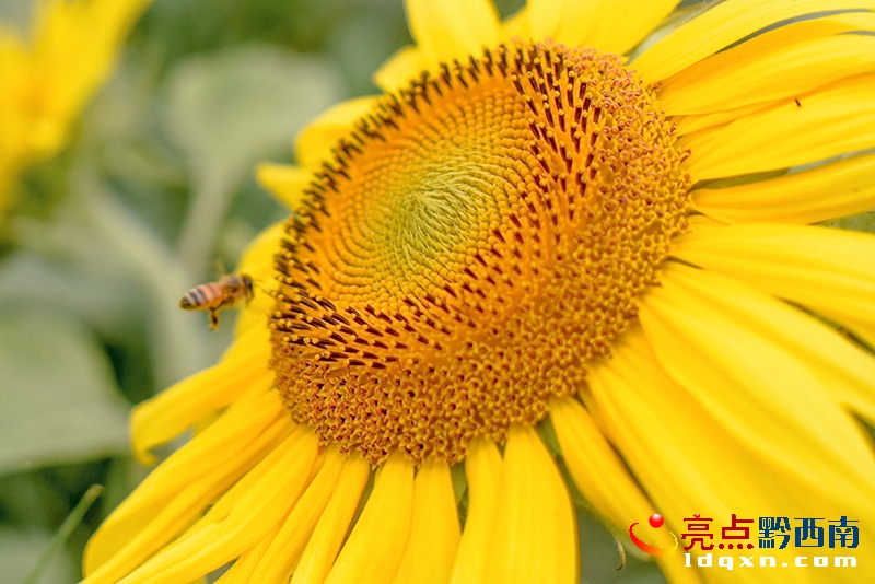 近日,興義市萬峰林街道魚隴村濱河花園的40余畝向日葵進入盛放期,金燦燦的一片,吸引眾多游客及攝影愛好者前來觀賞、拍照,大家都陶醉在向日葵花海中。