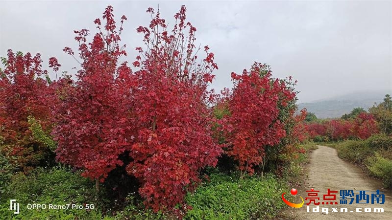 霜降臨近,秋意漸濃,天氣漸漸變涼,當(dāng)身邊第一片樹葉悄然飄落,大家才驚覺時(shí)節(jié)已至深秋。10月21日,筆者一行在興義市春雨園林有限公司負(fù)責(zé)人王朝連的引領(lǐng)下參觀了烏沙鎮(zhèn)大興寨村佳克組雞腸路的苗木基地,從佳克寨子往羊方向約一公里就到了雞腸路的苗木基地,遠(yuǎn)遠(yuǎn)望去,紅色的楓葉,基地里已是滿山紅遍、層林盡染。