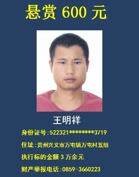 舉報(bào)有獎!興義法院發(fā)布執(zhí)行懸賞公告