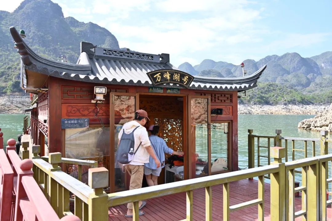 “第一次過來,這邊很綠、很清澈,風(fēng)景也挺好。”息烽游客陳英在萬峰湖乘坐游船后說道。