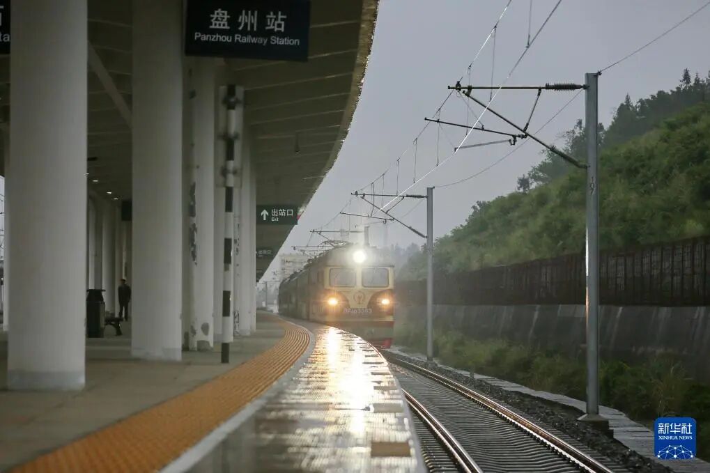 9月6日,在貴州省盤州市,盤興高鐵聯(lián)調(diào)聯(lián)試檢測列車從盤州站駛出。新華社發(fā)(張貴忠 攝)