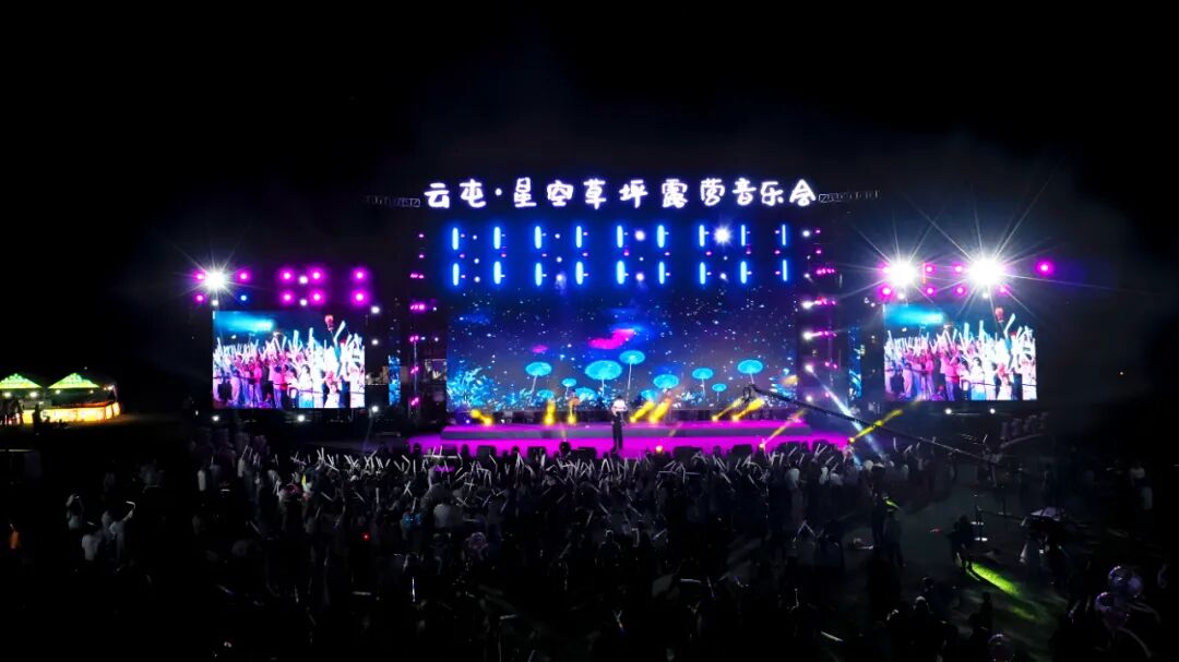 每天晚上7點,第七屆星空草坪露營音樂會準時開唱,夜幕下的云屯時光大草坪,熒光棒與音樂交織,游客們揮舞著熒光棒,跟隨音樂的節(jié)奏齊聲合唱,在星空與自然的環(huán)抱中,享受專屬的夜間盛宴。