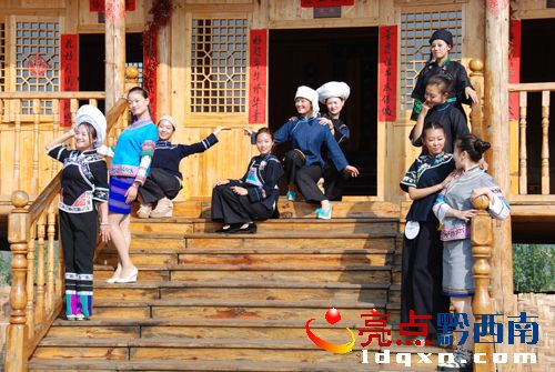 進(jìn)入總決賽的佳麗。引人注目的是,右邊第四名姑娘來自黔西南州的貞豐雙乳峰腳下布依族山寨,名叫韋韻,人氣很火。