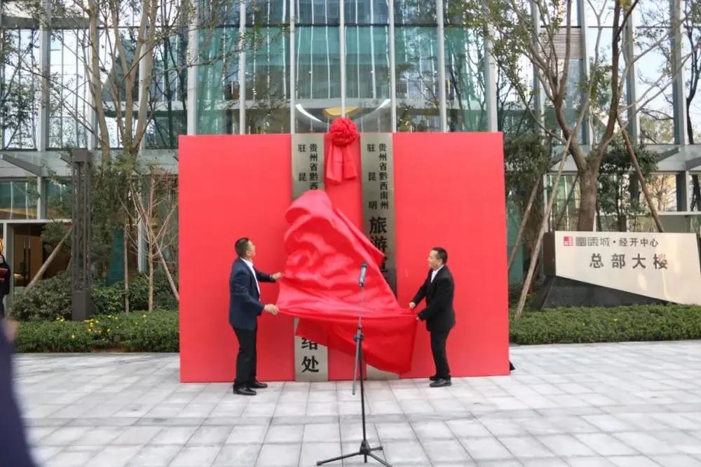 黔西南州文化廣電旅游局黨組書記、局長戴時昌,黔西南州投資促進局副局長樊榮共同為聯(lián)絡(luò)處和營銷中心揭牌。