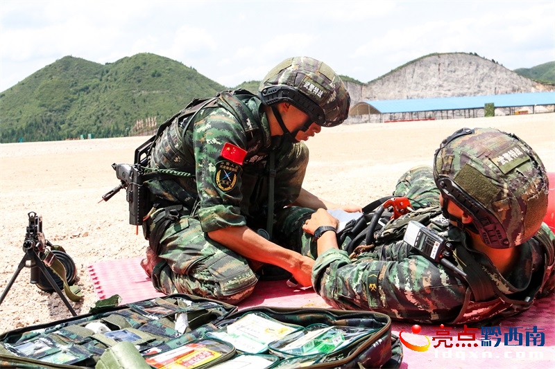 “注意!前方發(fā)現(xiàn)一名戰(zhàn)士小腿受傷,迅速前往救治……”一名衛(wèi)生員手拿救護(hù)包,低姿匍匐到傷員身邊展開救治。一場以實(shí)戰(zhàn)背景的衛(wèi)勤演練在某訓(xùn)練場打響,這是武警黔西南支隊(duì)組織衛(wèi)生員集訓(xùn),檢驗(yàn)衛(wèi)生員近段時(shí)間集訓(xùn)成果、快速處臨時(shí)情況的真實(shí)寫照。