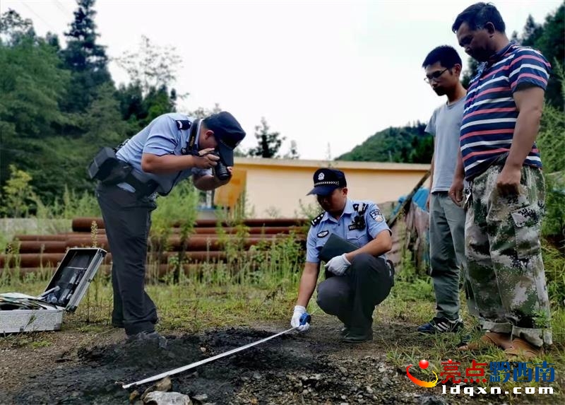 高棉派出所民警勘驗(yàn)現(xiàn)場(chǎng)