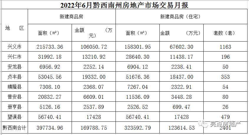 近日,黔西南州住房城鄉(xiāng)建設(shè)局公布2022年6月黔西南州房地產(chǎn)市場(chǎng)交易月報(bào)數(shù)據(jù)。