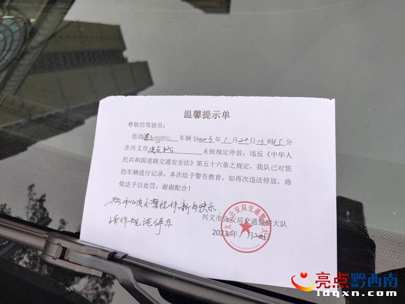 這樣的溫馨舉措,在春節(jié)期間,則是興義市執(zhí)勤交警的工作日常,車主們也紛紛為這樣的暖心“罰單”點(diǎn)贊。