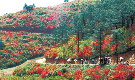 每年4月至5月,正是七舍杜鵑花盛開(kāi)的時(shí)節(jié),白龍山景區(qū)、巖峰洞景區(qū)十里杜鵑繁花似海,游客漫步其間,如在畫中。 本報(bào)記者 鄧伯祥 攝